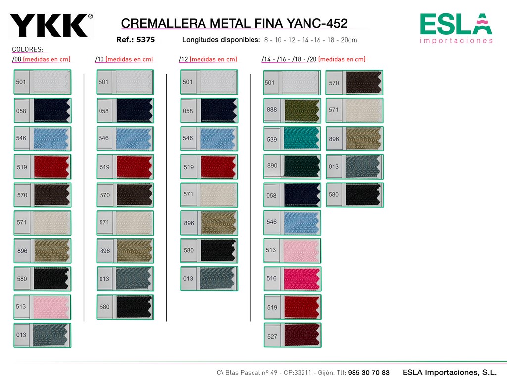 CREMALLERA METAL PLATA FINA YANC-452