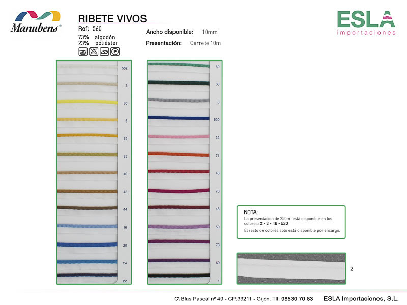 Cómo comprarLa presentación de 250m está disponible en los siguientes colores: